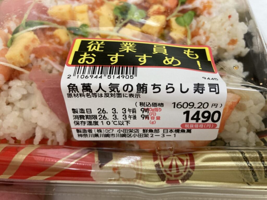 ロピアの従業員の方もおすすめのちらし寿司だそうです!